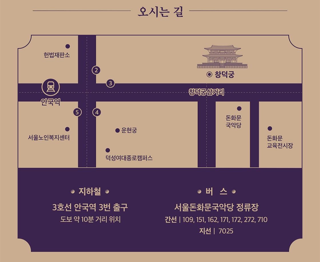 서울돈화문국악당 정류장에서 하차하시면 창덕궁 달빛기행 행사에 어렵지 않게 도착 가능합니다.